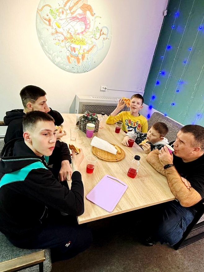 Вручение подарков стало приятным сюрпризом для воспитанников и добавило еще больше радости в этот день, а уютное чаепитие с ватрушками и пиццей завершило дружескую встречу.