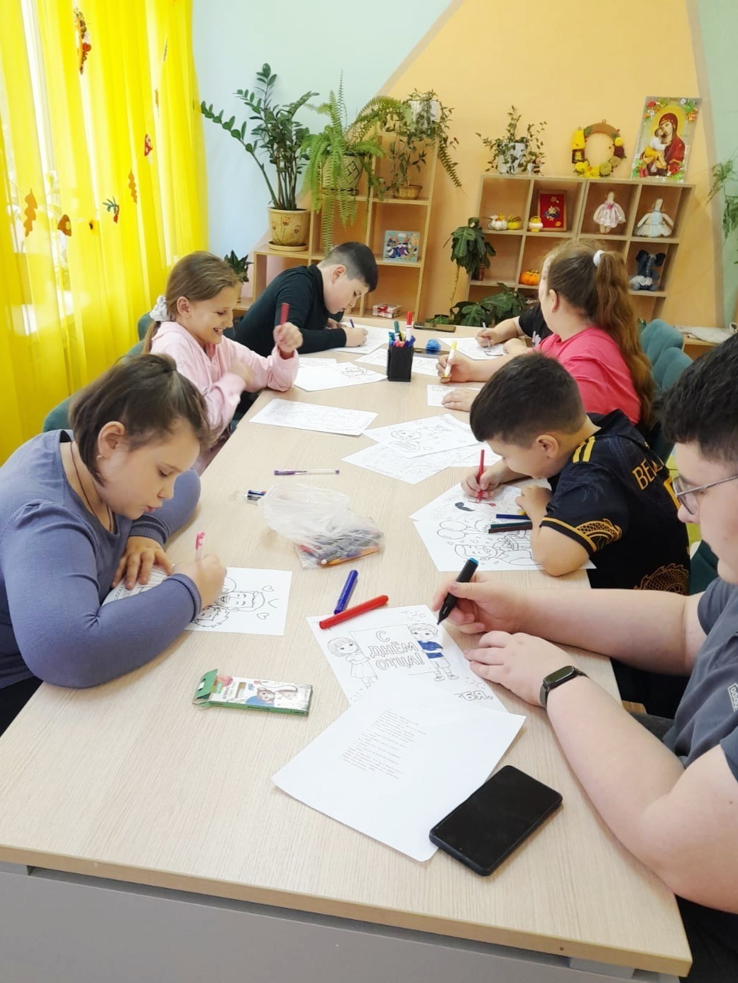 У многих ребят полустационара папы находятся в зоне СВО, поэтому детям очень хотелось поддержать и поздравить своих пап. Сделали открытки.
