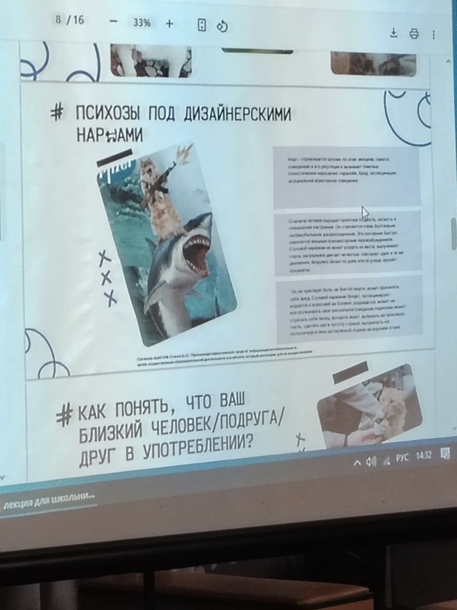 От врача-психиатра подростки в доступной форме узнали о последствиях употребления ПАВ, видах зависимостей. В презентации сообщалась важная информация о том, куда и как может обратиться подросток за помощью в случае необходимости.